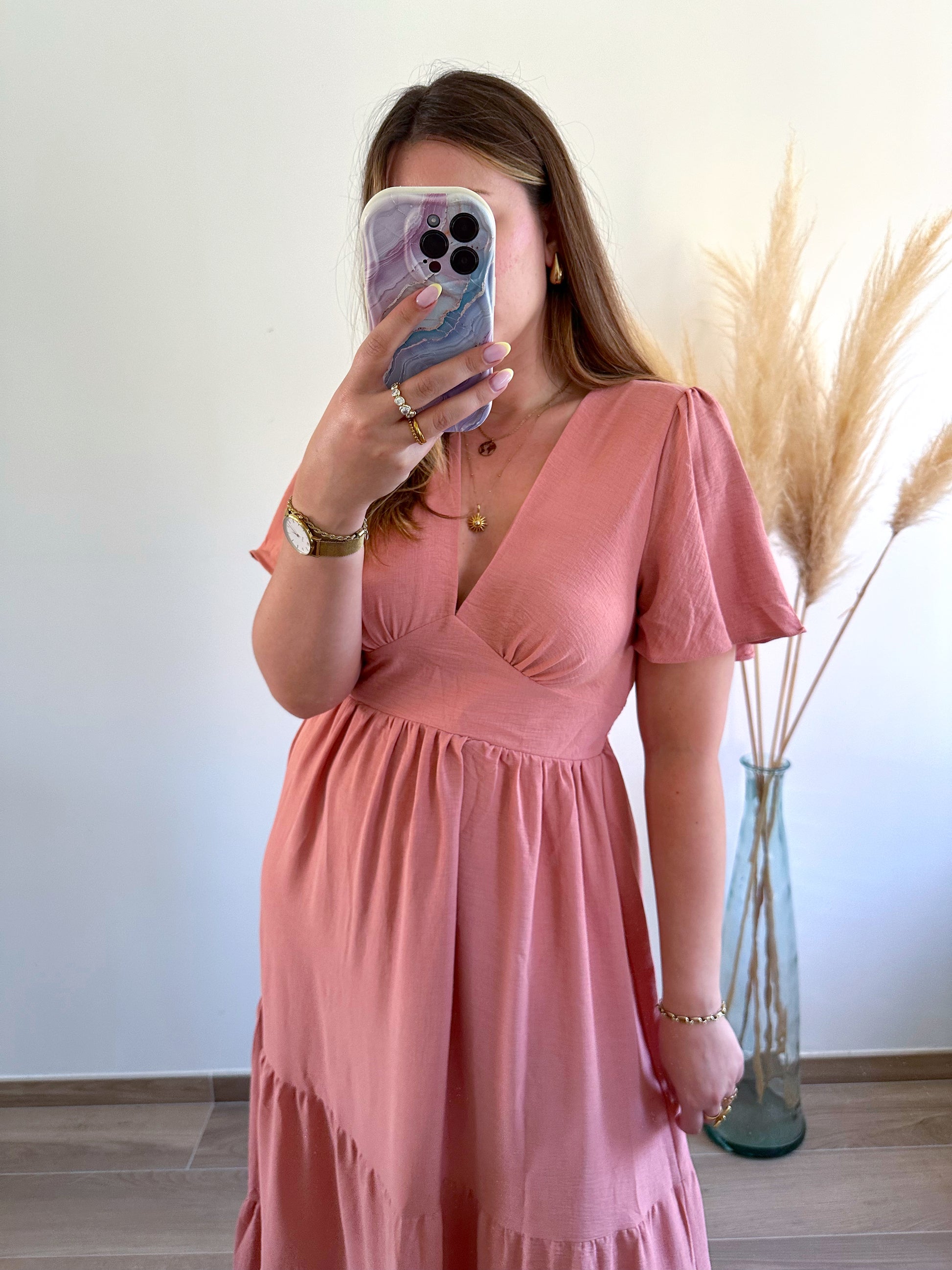 Robe longue vieux rose EMMA