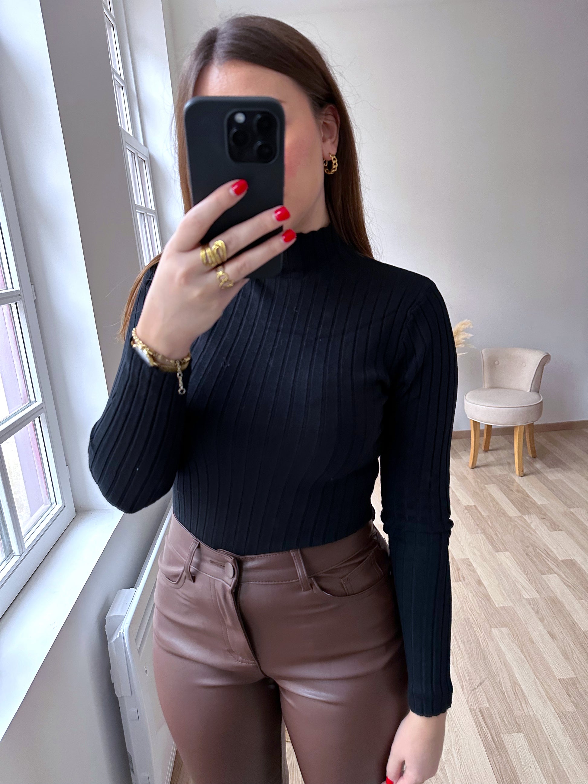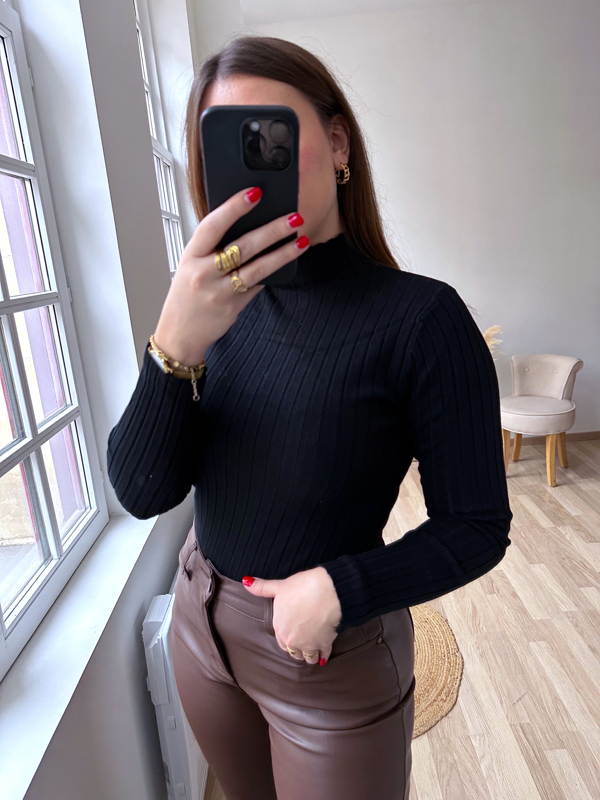 ▫️Pull fin noir côtelé