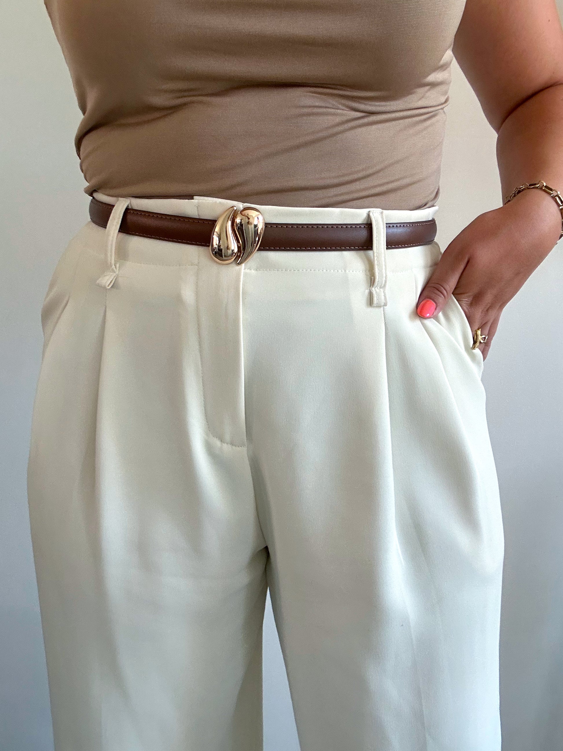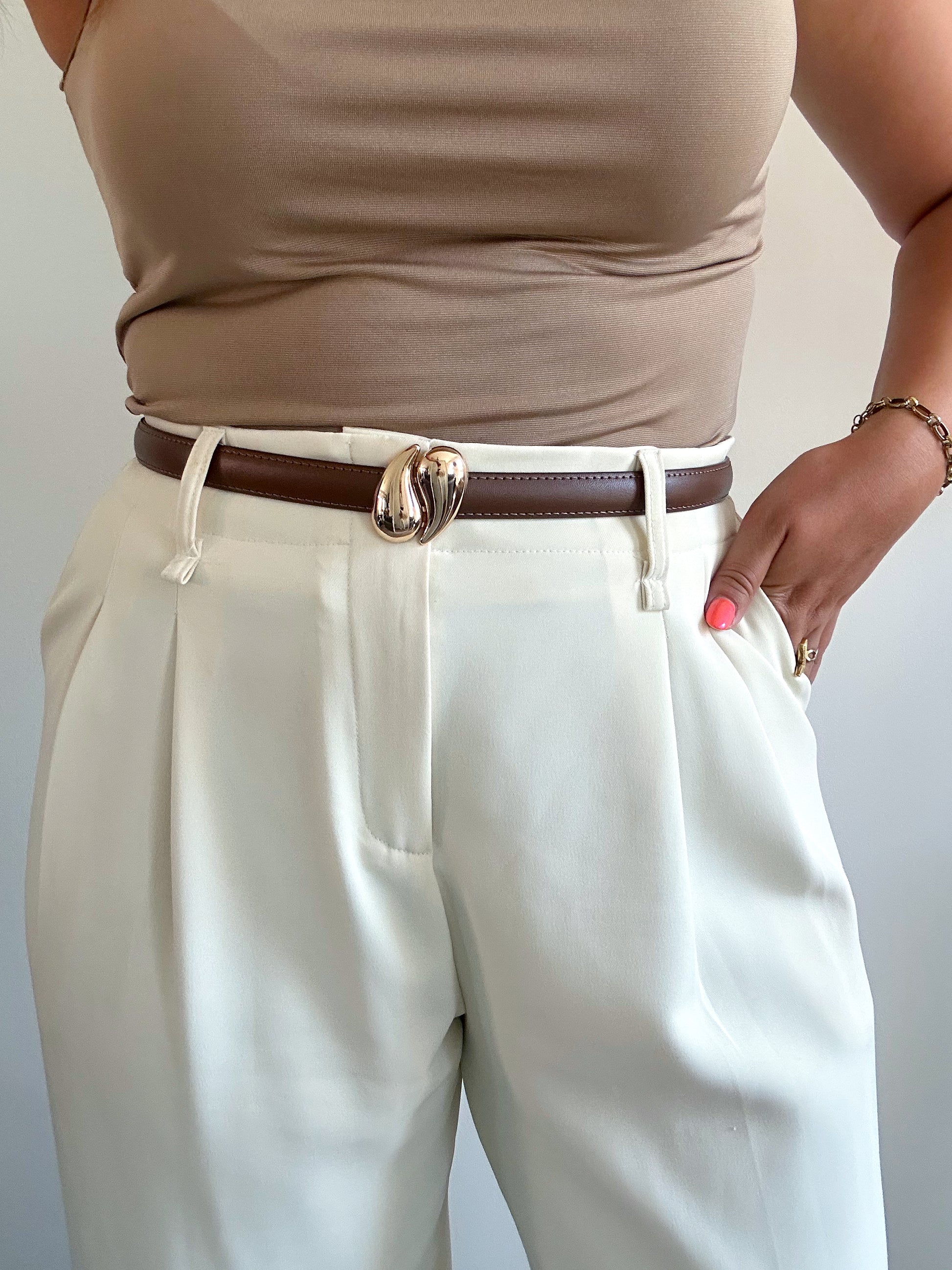 ▫️Ceinture marron/taupe avec accroche dorée