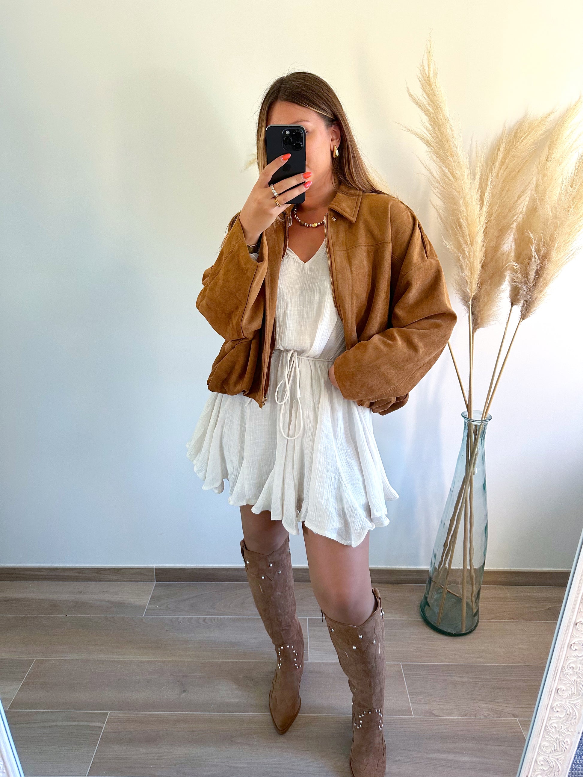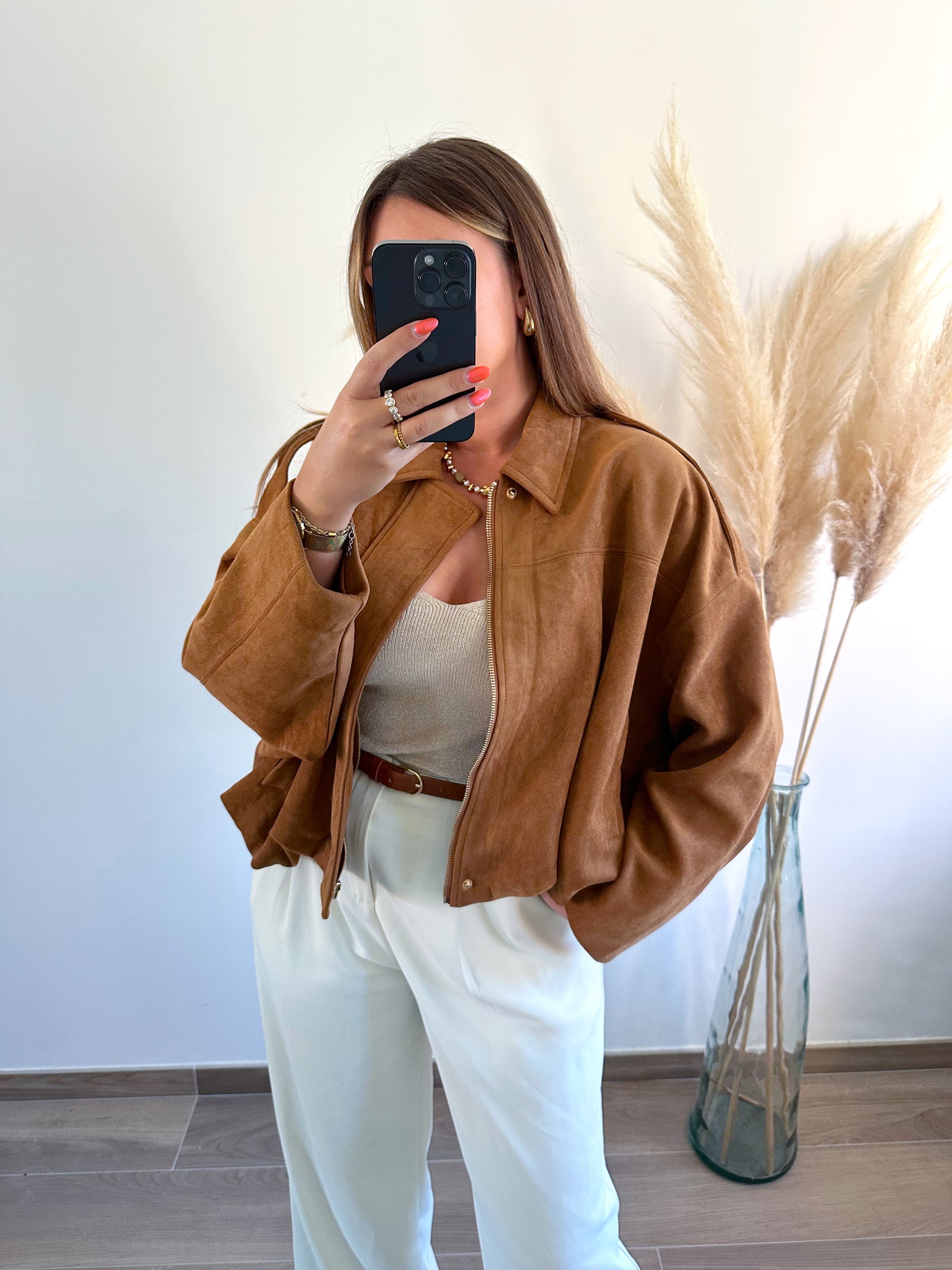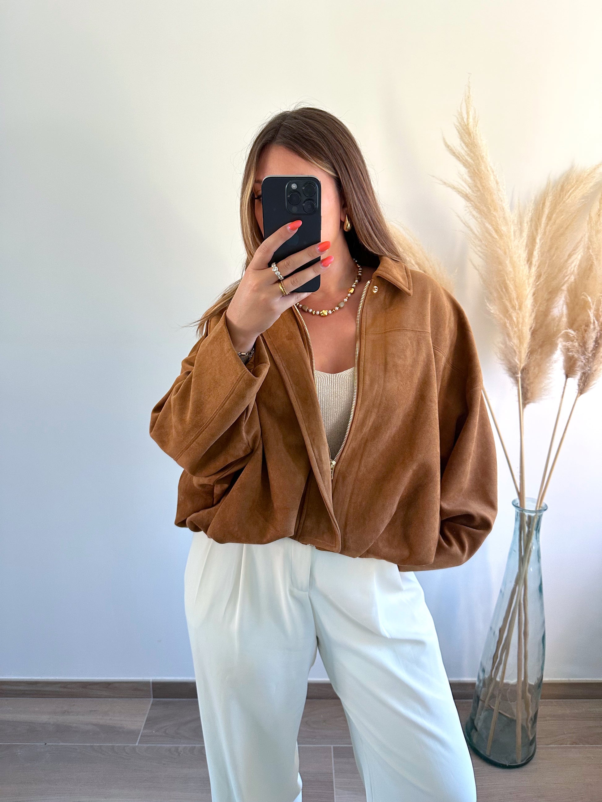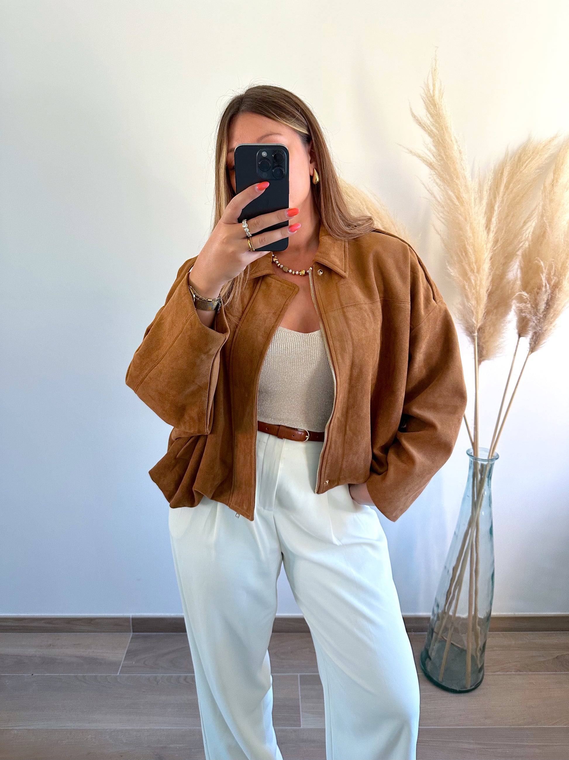 ▫️Veste style bomber effet suedine camel